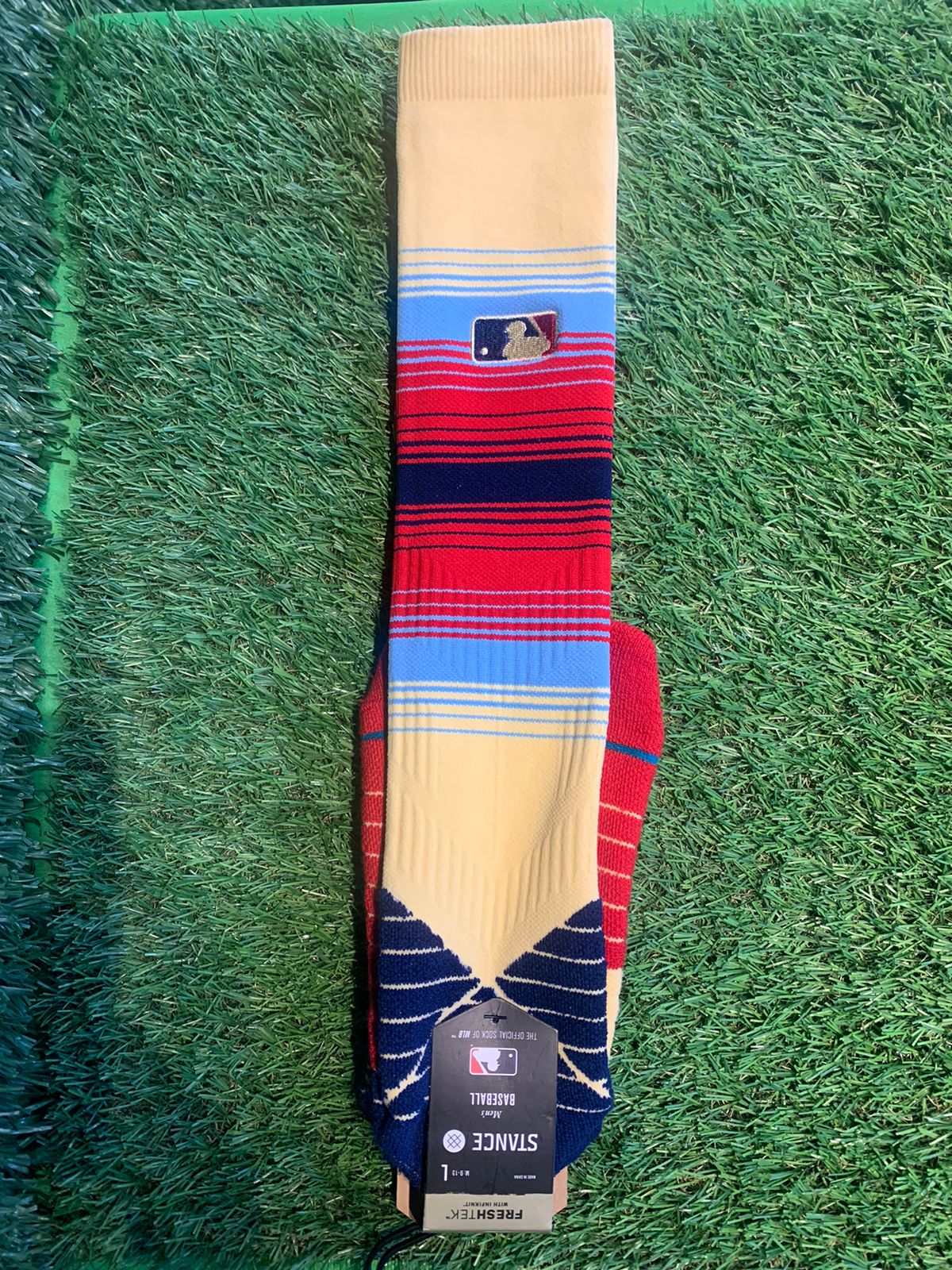 CALCETA STANCE MULTICOLOR EN LINEAS BEIGE ROJA AZUL MARINO Y AZUL CLARO