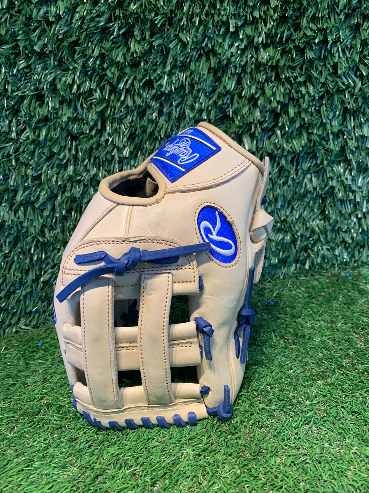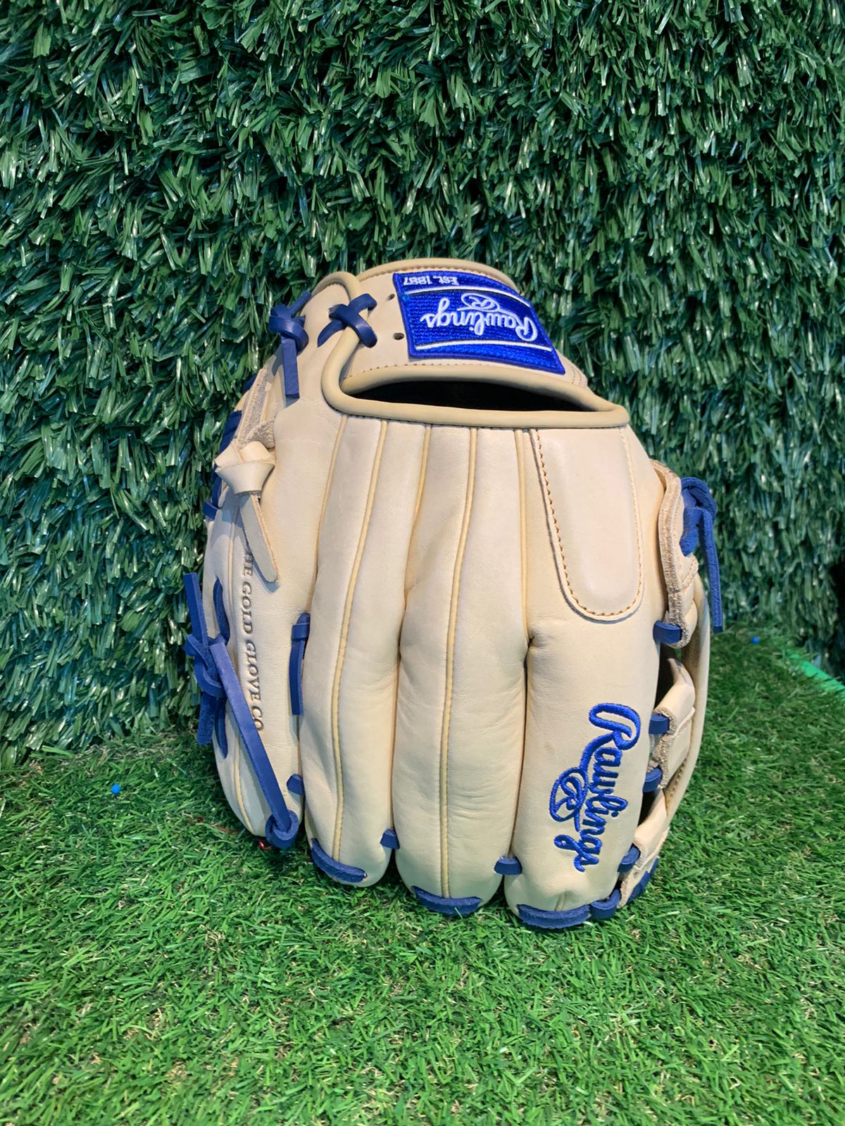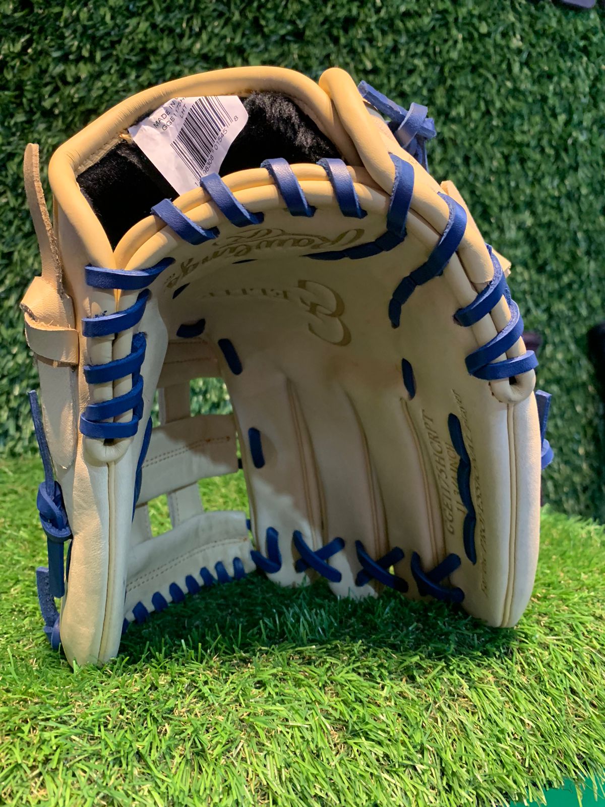 GUANTE RAWLING GGELITE GGE1175HRPT 11 3/4 COLOR BEIGE CON DETALLES COLOR AZUL MARINO LETRS Y CORREA